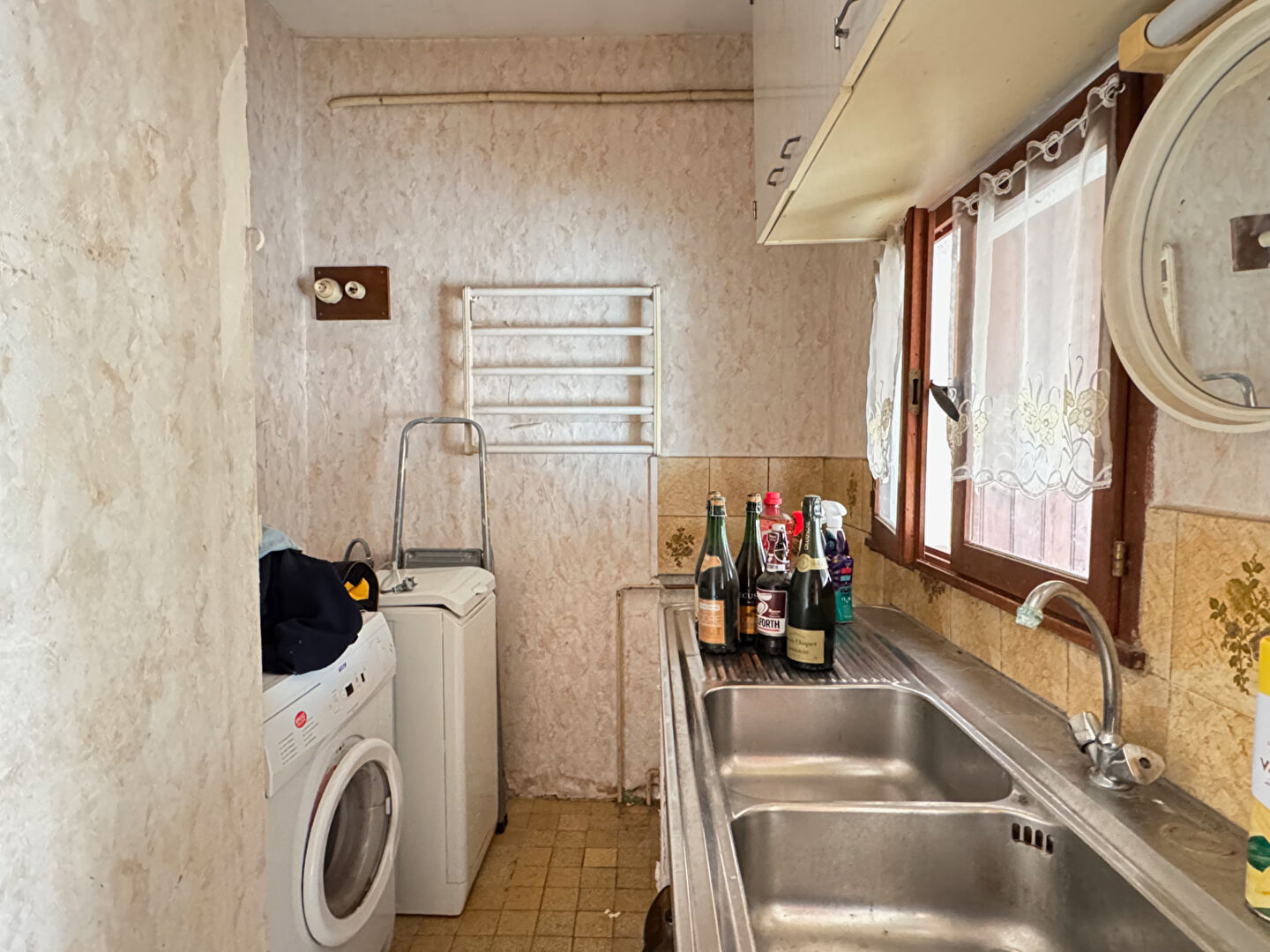 Une entrée, une buanderie, un WC indépendant, une cuisine séparée, deux chambres et une salle de bain offrant de nombreuses possibilités d’aménagement,